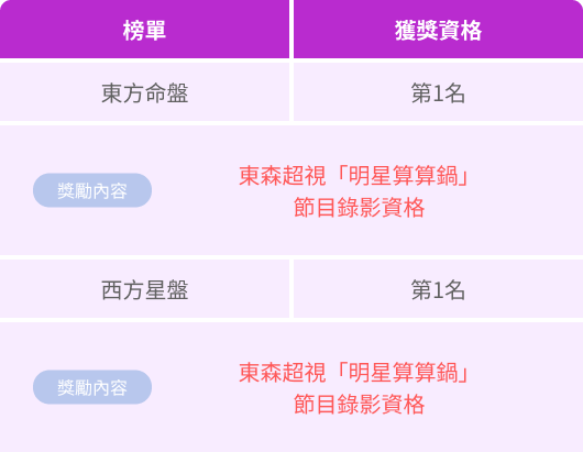 8. 東森超視「明星算算鍋」節目錄影得獎資格將不得重覆,若主播有重覆獲獎之情況,官方將依本活動月總榜中,收禮總點數高者及獲獎排名為依序安排遞補。