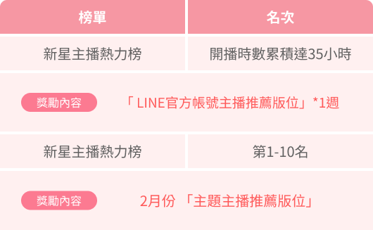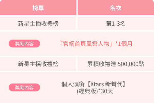 註 : 主播/星粉總榜中相同類型獎勵領取,以累積送禮達到之最高門檻為主,非累計領取。