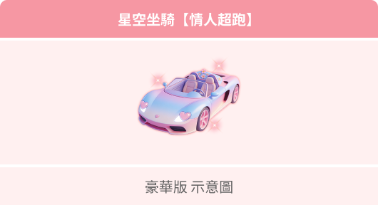 註二 : 星空坐騎【情人超跑】(豪華版)每帳號僅限領取乙次獎勵,非累計領取。
